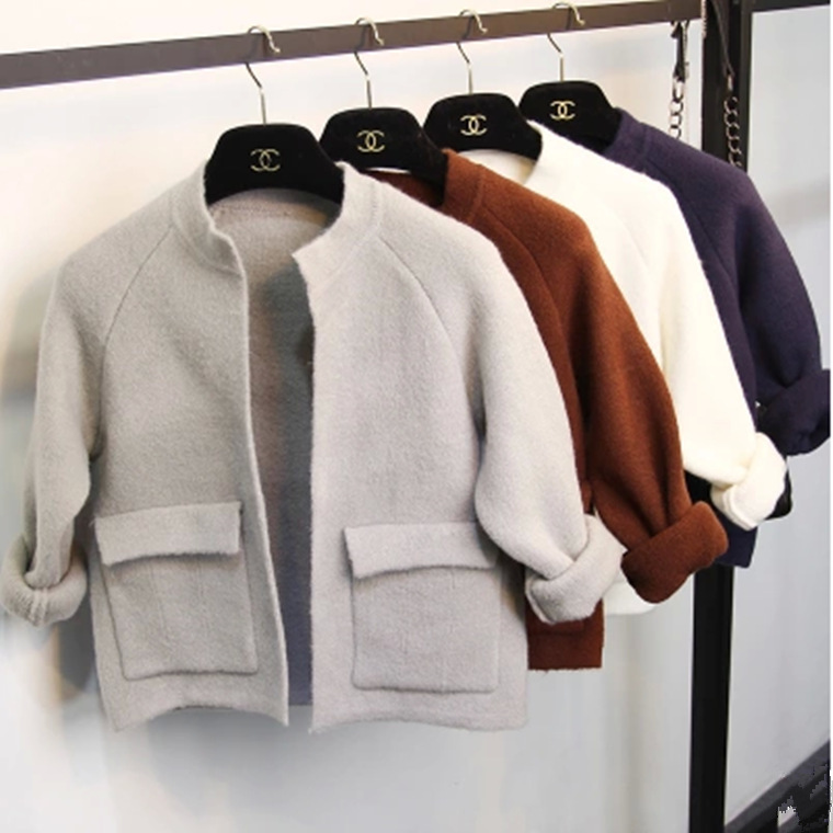 批發(fā)韓國東大門秋冬新款加厚口袋寬松毛衣女式針織開衫短款外套女 /