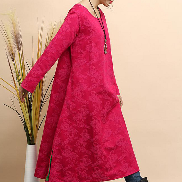 15年冬女裝新款加厚連衣裙 雙層 棉麻清新文藝寬松提花棉休閑長袍 /