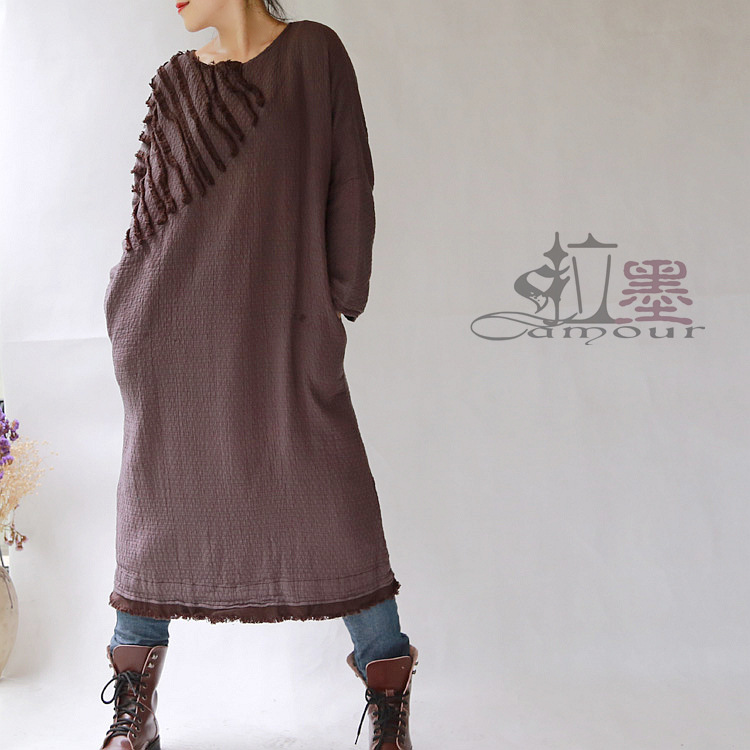 簡介: 貨源類別現貨 主圖來源實拍有模特 風格文藝 圖案純色 工藝拼貼/拼接 產地成都 款式基本款 組合形式單件 裙長中長裙 裙型一步裙 領型圓領 袖型插肩袖 袖長長袖 腰型寬松腰 衣門襟套頭 流行元素木耳邊 上市年份/季節2015秋季 面料名稱棉 主面料成分棉 主面料成分的含量100(%)