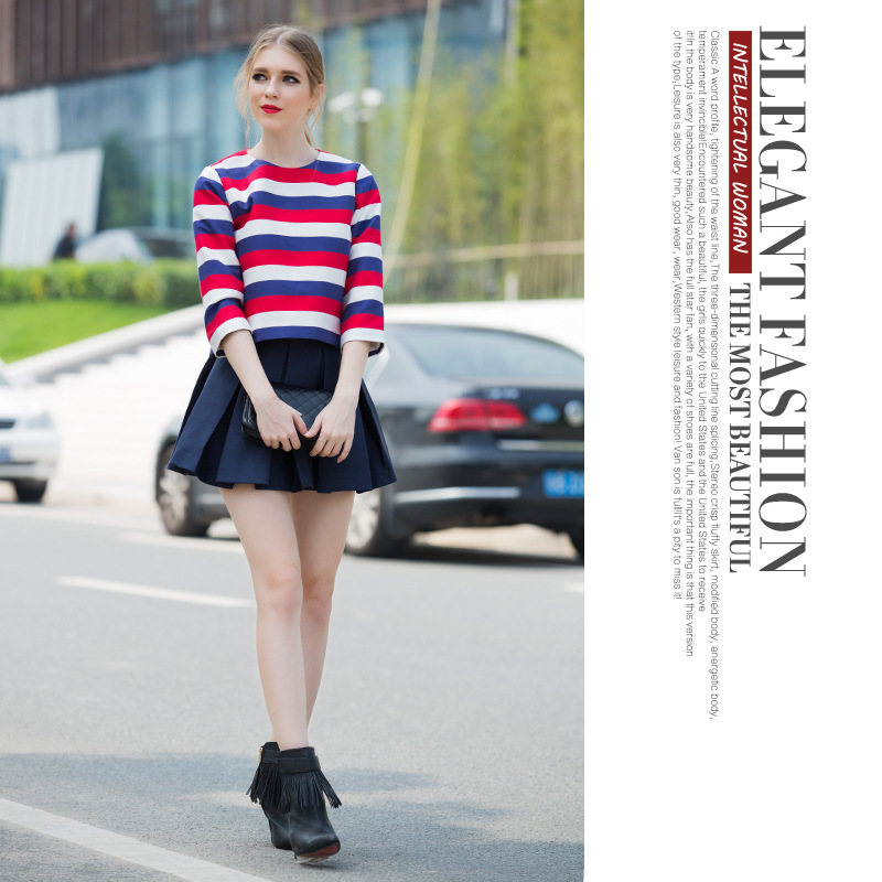2015秋冬新裝廠家直銷女裝套裝顯瘦紅色圓領上衣+半身裙兩件套 /