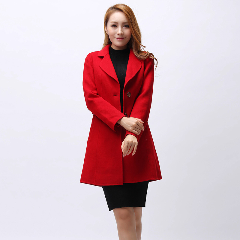 批發2015秋季新款時尚舒適保暖中長款大衣 翻領雙面羊毛女式外套 /