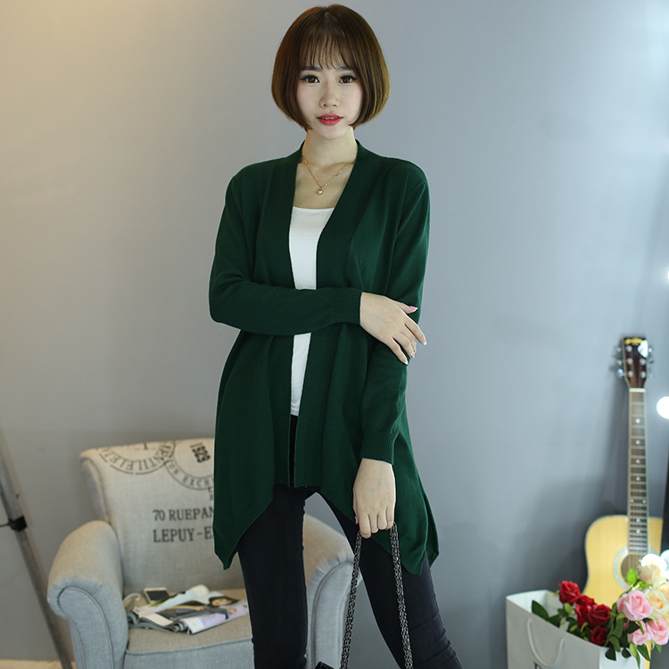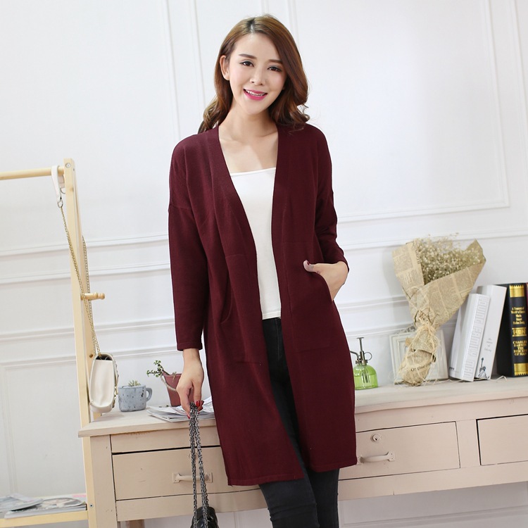 針織兔絨開衫秋季韓版女士針織長袖開衫純色長款編織開衫廠家批發 /