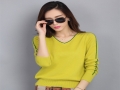 2015秋冬新款貂絨衫女V領針織衫長袖休閑鑲邊修身顯瘦打底女毛衣 /