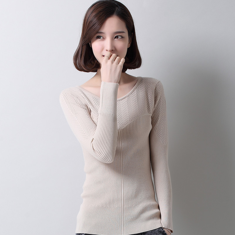 2015秋冬高領彈力毛衣打底衫女鏤空修身針織衫套頭長袖羊毛衫 /