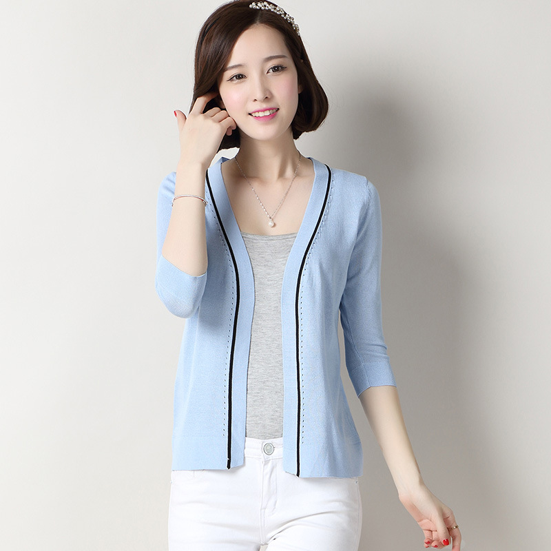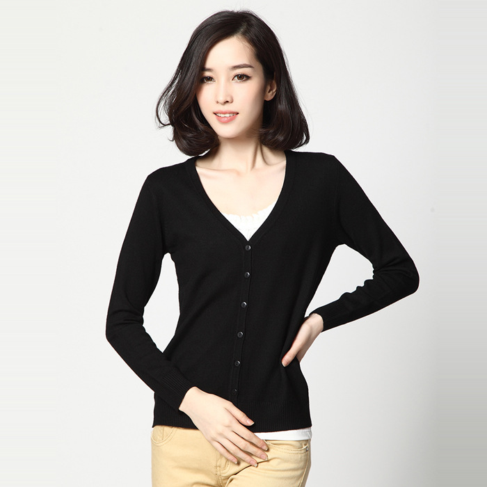 2015秋季女士新款開衫針織衫毛衣女 V領修身簡約純色空調衫外套 /