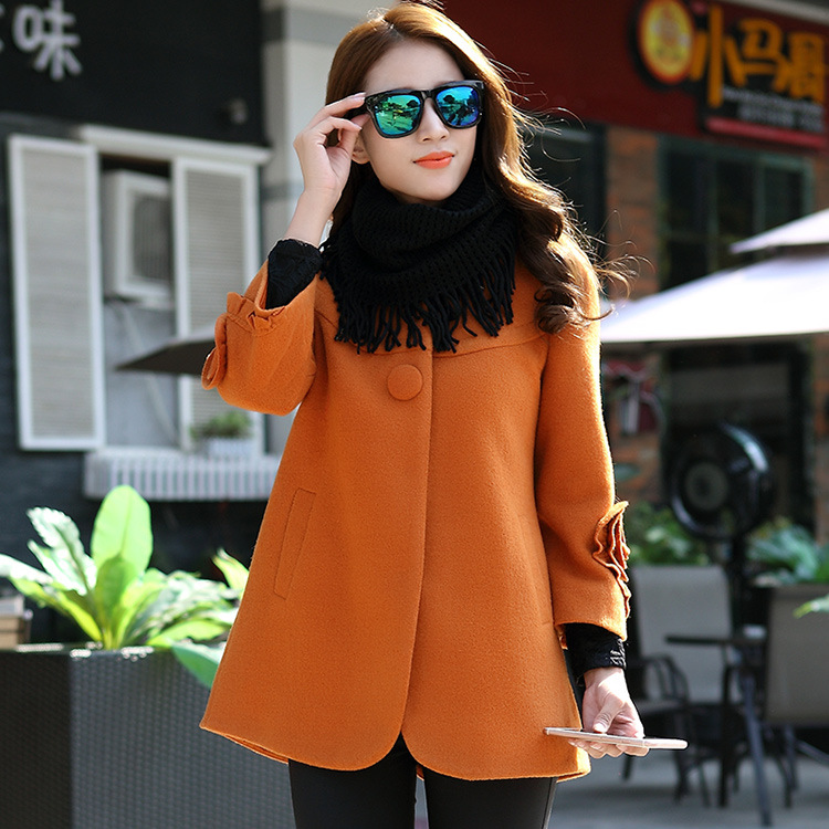 2015秋冬新款女裝韓版修身A字羊毛斗篷呢大衣中長款顯瘦毛呢外套 /
