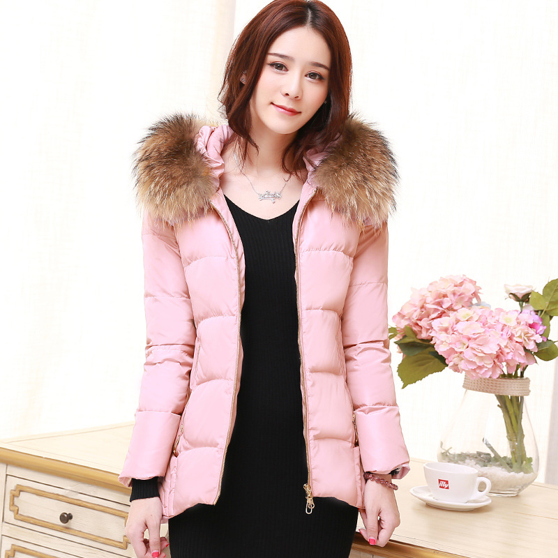 2015冬季新品女裝韓版時(shí)尚潮流中長款加厚白鴨絨帶帽羽絨服女外套 /