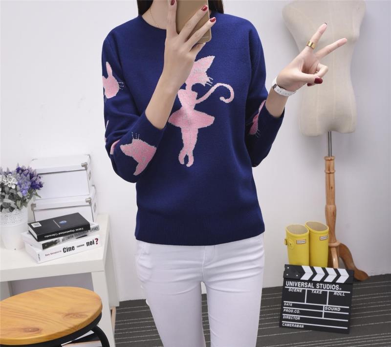 2015秋冬款新品時(shí)尚女裝休閑百搭毛衣圓領(lǐng)卡通圖針織衫女 /