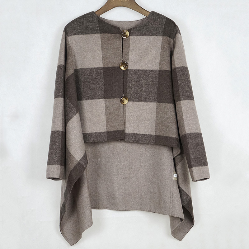 2015秋冬款女裝 時(shí)尚休閑方格雙面羊毛呢斗篷外套 女式外套批發(fā) /