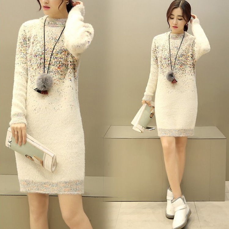 歐洲站2015冬裝新款女裝中長款毛衣秋裝連衣裙長袖修身針織打底裙 /