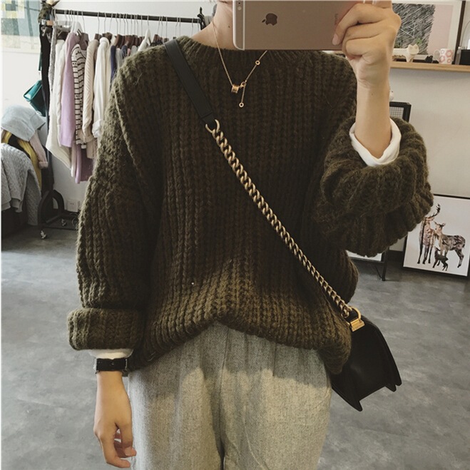 2015冬季新款韓版時尚女裝粗棒針套頭慵懶百搭寬松顯瘦毛衣 /