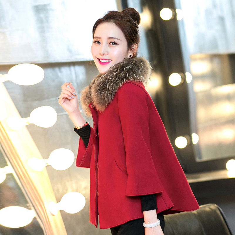 特價小香風毛呢大衣女2015新款韓版雙面羊絨斗篷短款風衣呢子外套 /