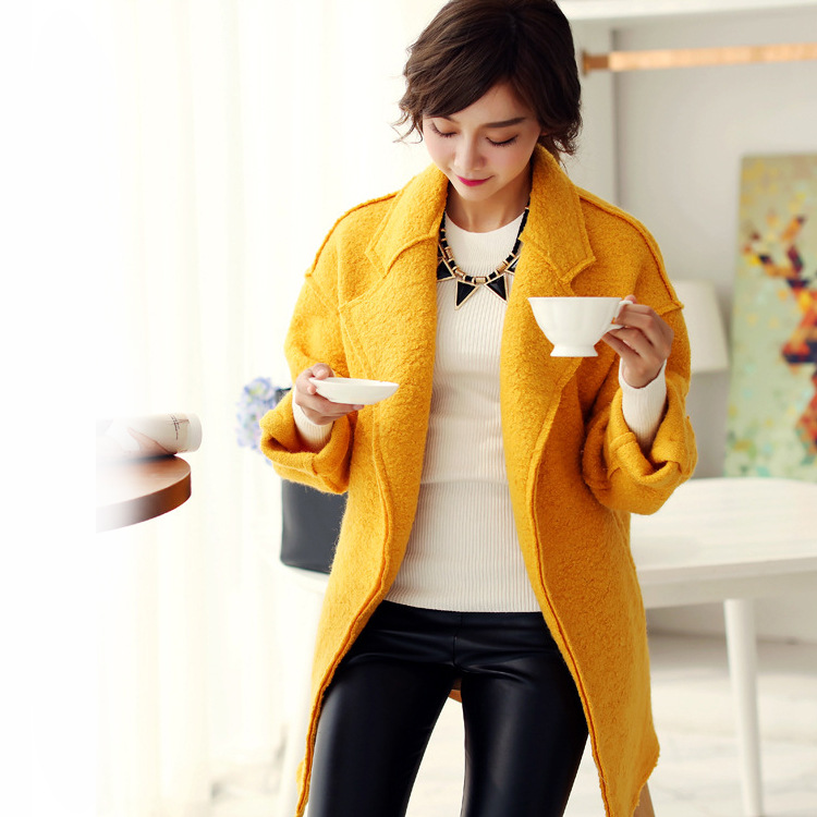 2015冬季女裝新品批發韓版毛呢外套中長款 一件代發 免費代銷 /