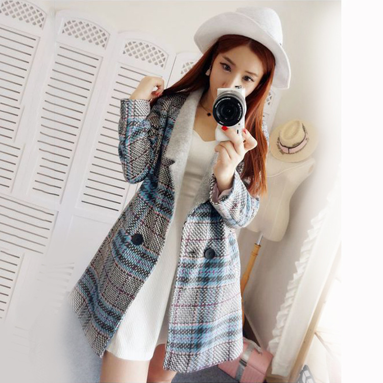 2015秋冬新款女裝批發 中長款格紋毛呢外套 淘寶一件代發 /