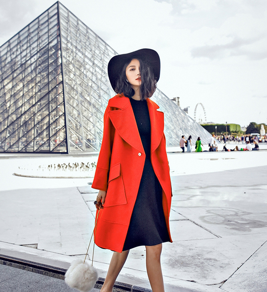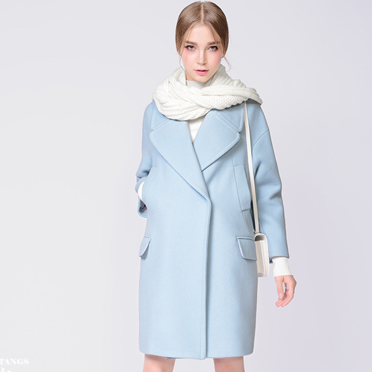 冬季新款女裝批發高檔羊毛外套 中長款加厚保暖毛呢大衣一件代發 /