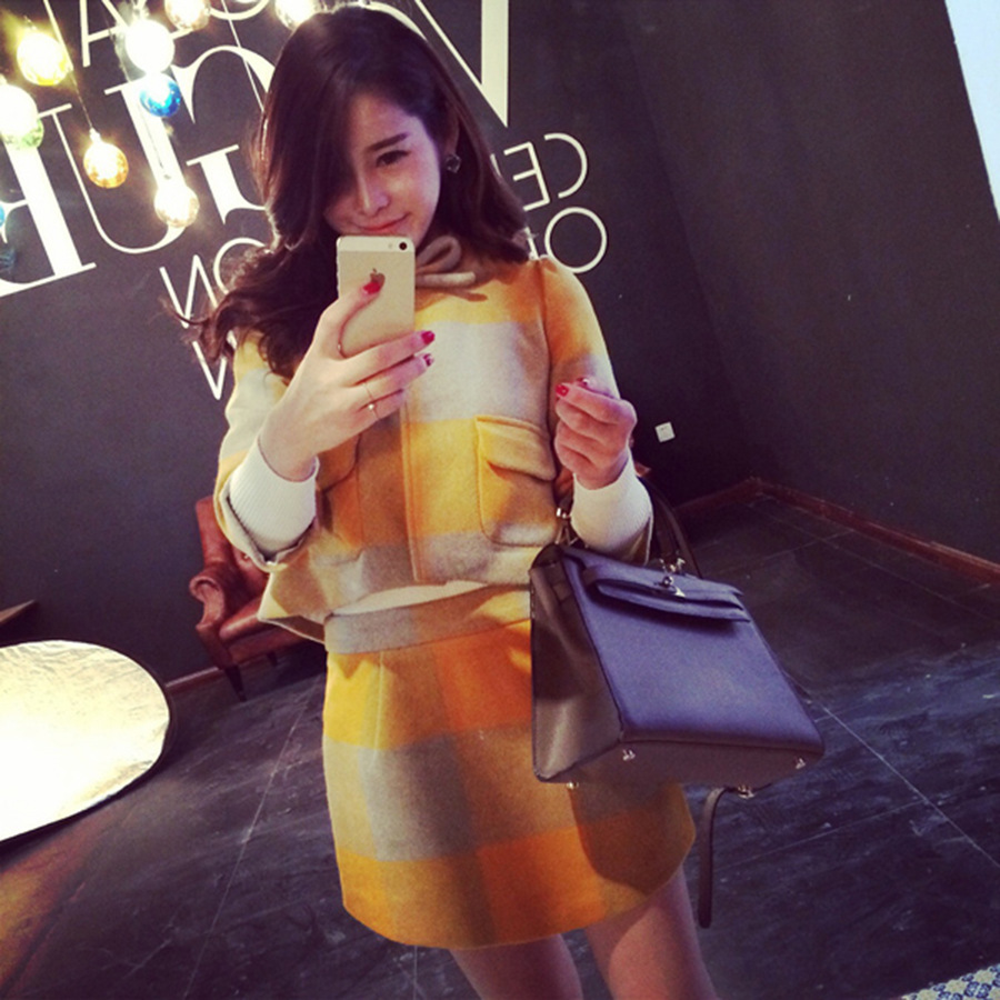 歐美女裝批發 格紋毛呢外套+半身毛呢短裙淘寶一件代發 免費代銷 /