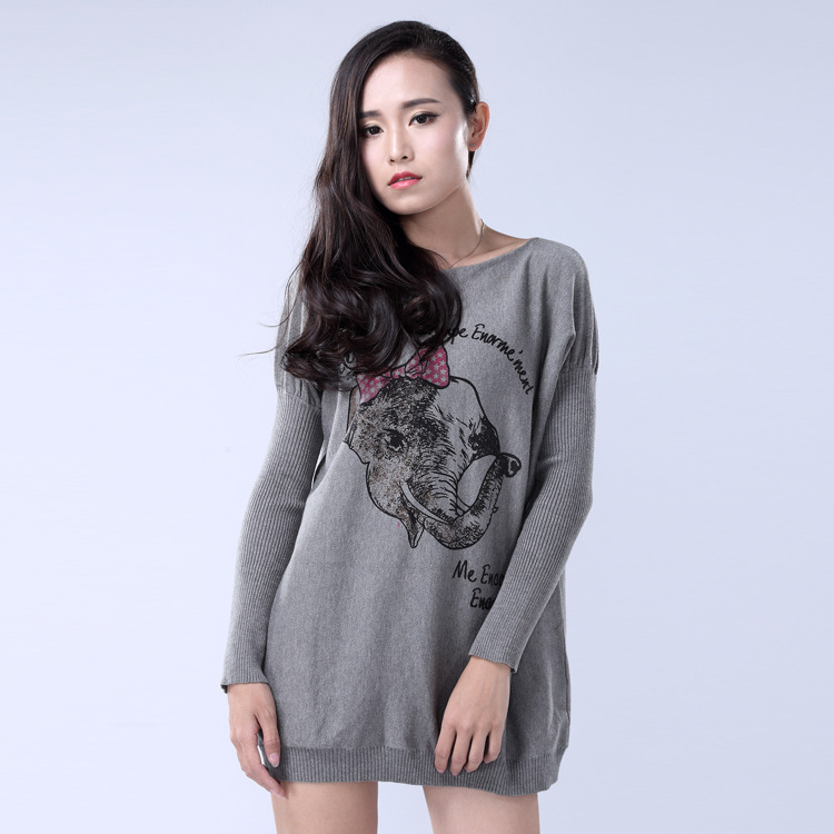 2015歐美高檔秋冬女裝時尚寬松打底毛衣中長款圓領(lǐng)套頭長袖針織衫 /