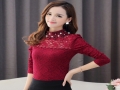 實拍2015秋冬新款加絨加厚蕾絲打底衫女韓版修身長袖蕾絲上衣 /