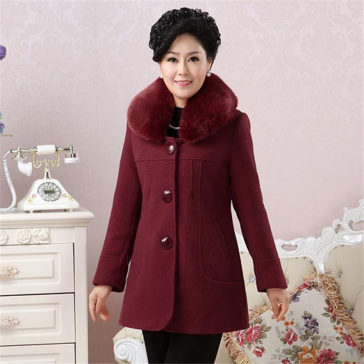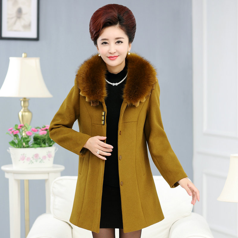 新款中老年女裝毛呢外套大碼中年媽媽裝秋冬中長款羊毛呢外套 /