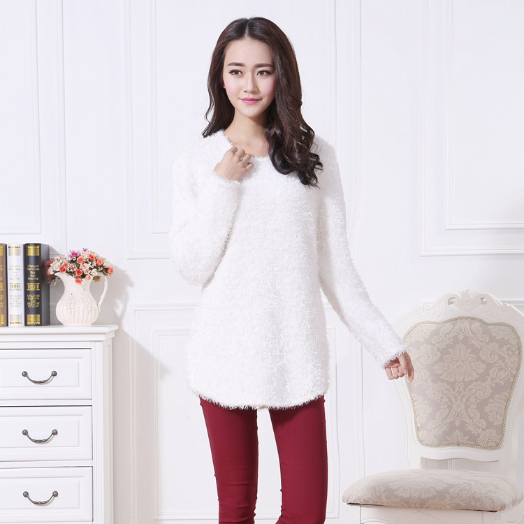 毛衫貼牌加工大朗服裝加工 2015秋女裝馬海毛純色女式針織衫毛衣 /