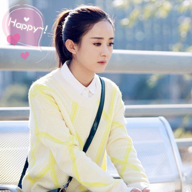 明星同款2015秋加油吧實習生趙麗穎同款毛衣女甜美圓領套頭打底衫 /