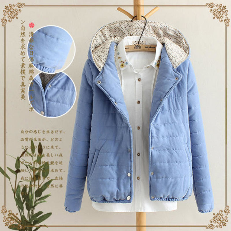 2015新款日系森女秋冬季女裝外套上衣棉服裝連帽小棉衣單排扣棉襖 /