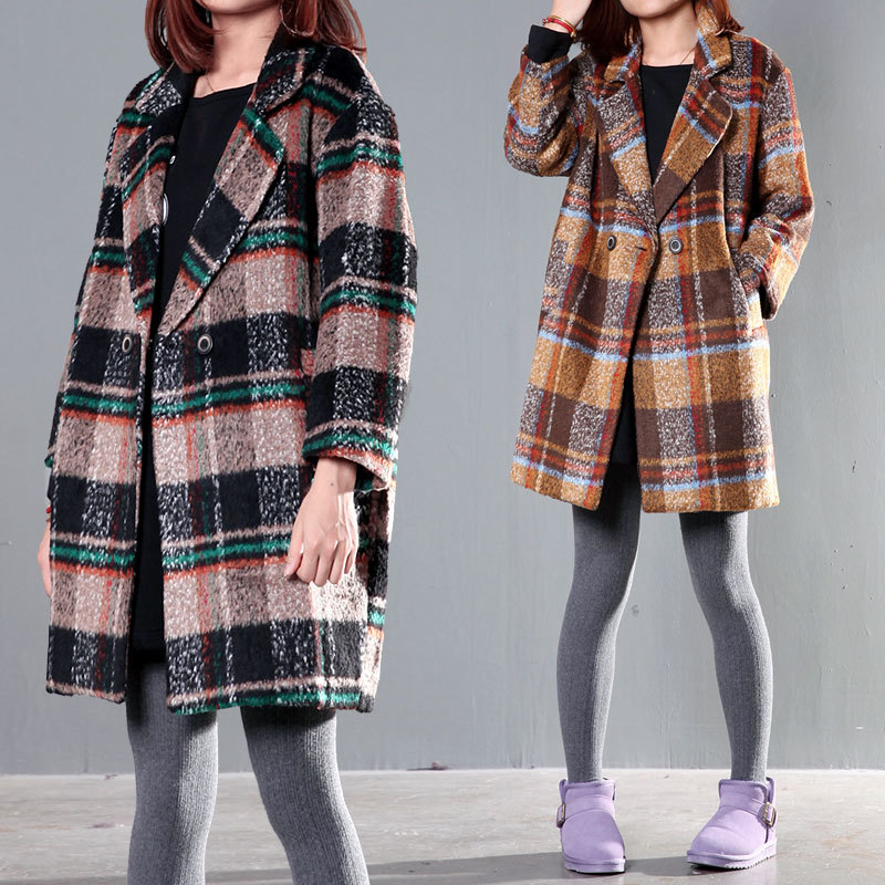 原創大碼女裝秋冬裝新款呢料外套韓版學院風大格子休閑毛呢大衣女 /