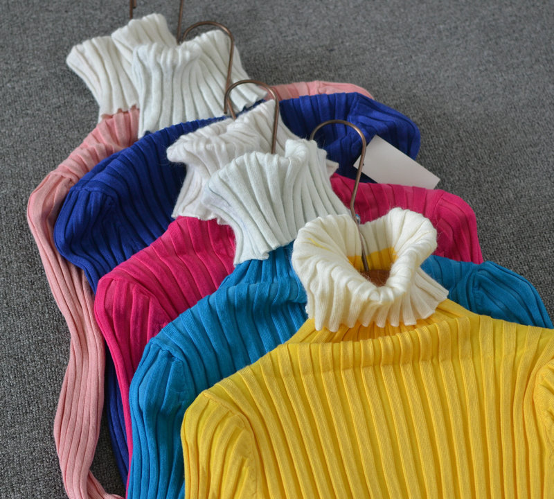 春秋女裝尾貨批發 韓版甜美彩色高領修身絲光棉針織打底衫庫存清 /