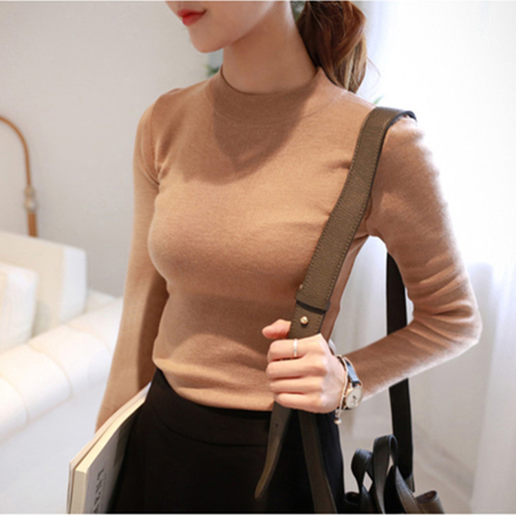 半高領毛衣女套頭修身打底衫圓領緊身螺紋內搭針織衫秋冬韓版薄款 /