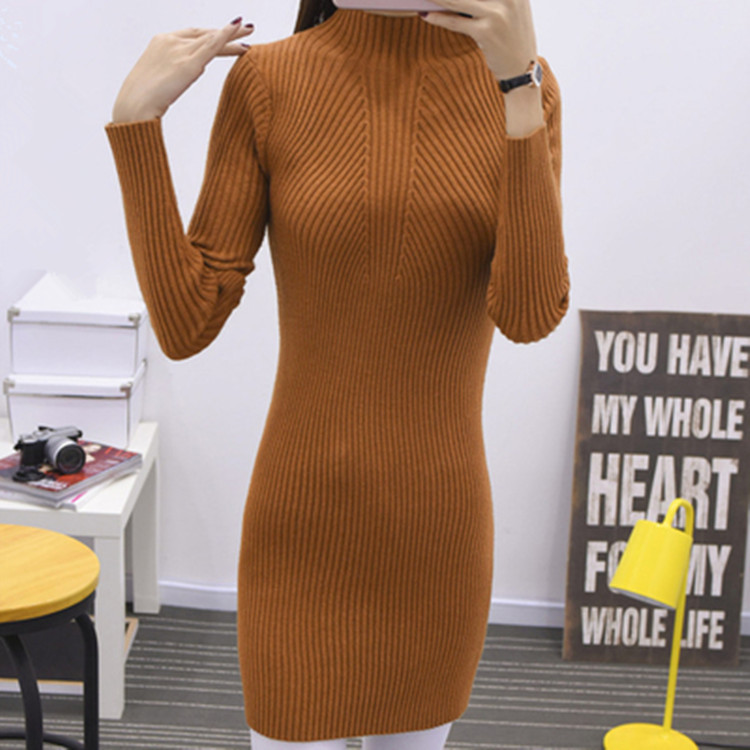2015新款半高領中長款毛衣修身顯瘦針織衫厚打底衫女裝上衣 /