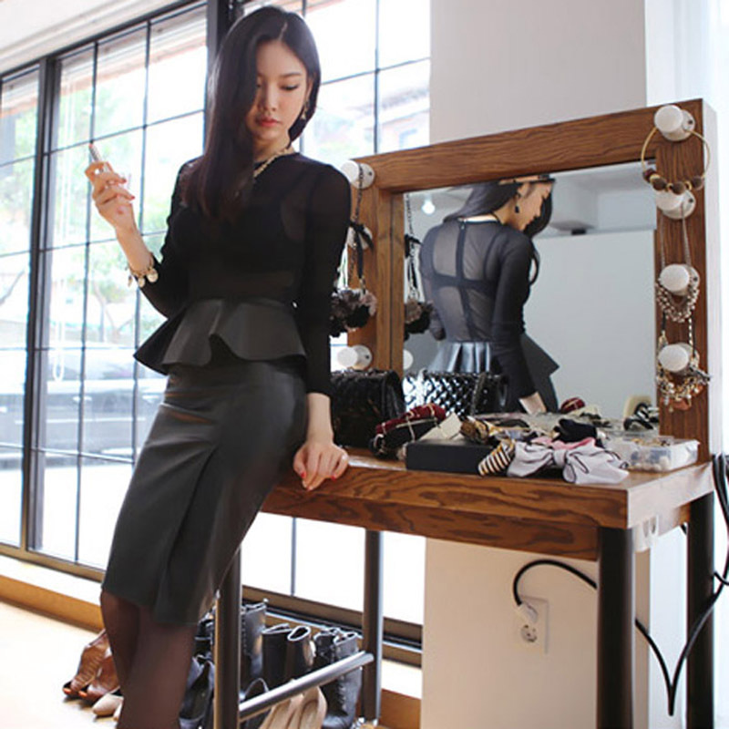 2015秋冬新款女裝韓版包臀pu皮裙高腰修身直筒百搭中長半身一步裙 /