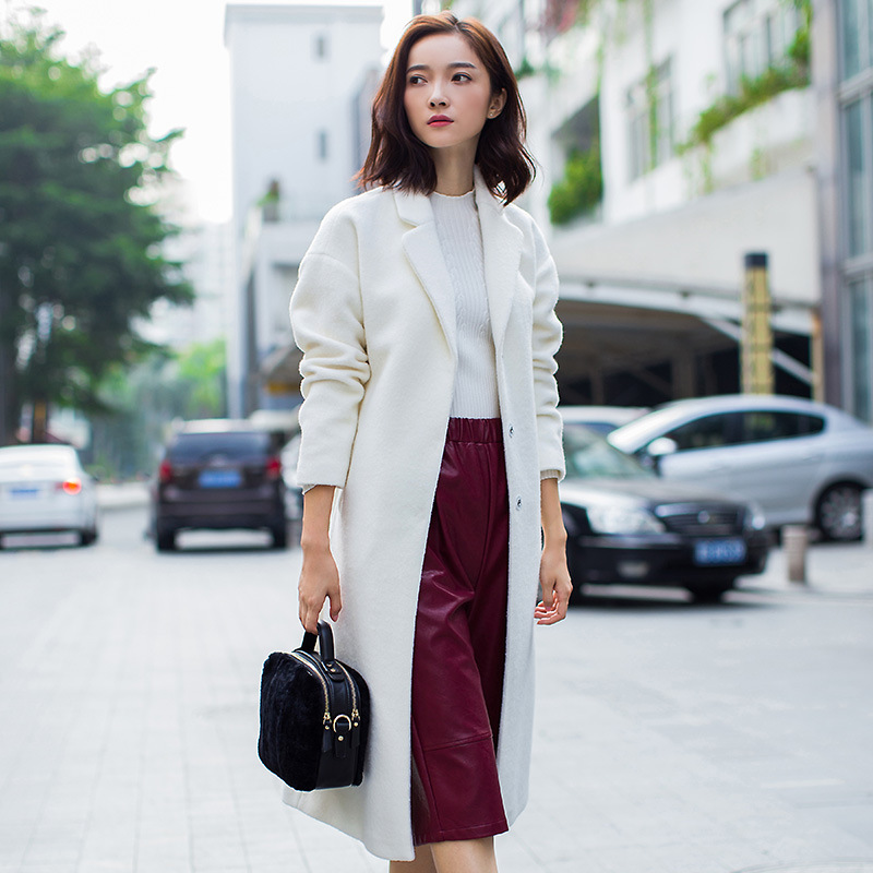 廠家直銷 2015新款歐美冬季毛呢外套女中長款長袖加厚羊毛呢大衣 /