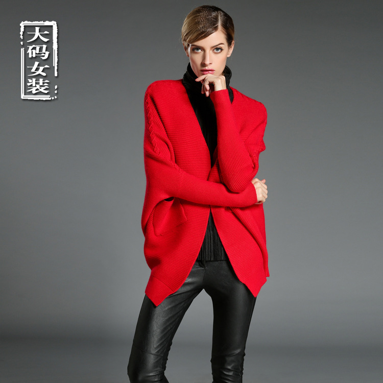 2015秋冬裝新款歐美大碼女裝中長款加厚寬松外搭毛織開衫毛衣外套 /