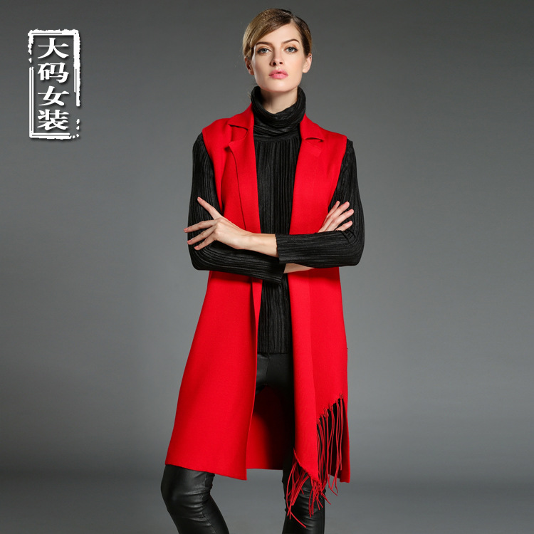 2015歐美大碼女裝秋冬新款胖mm修身顯瘦毛織馬甲中長款毛衣外套潮 /