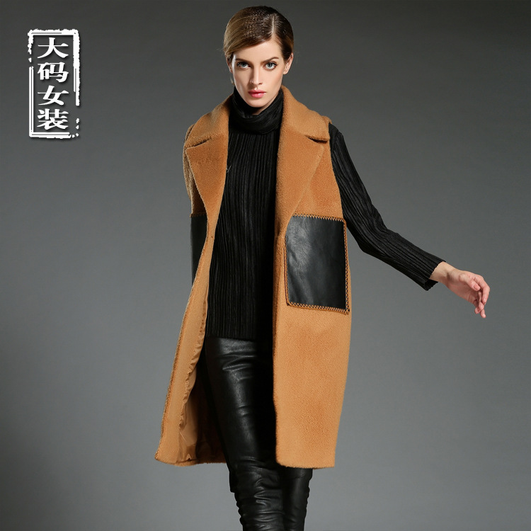 2015秋冬新款歐美毛呢馬甲胖mm長款無袖翻領馬甲大碼毛呢背心外套 /