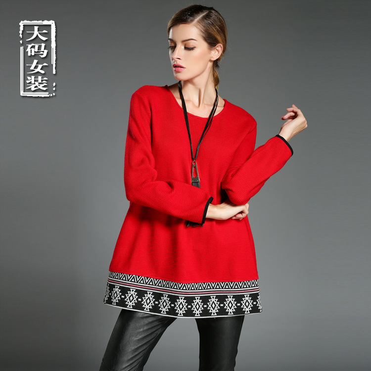 批發歐美大碼寬松T恤女裝上衣秋冬新款胖mm編織針織衫T恤時尚上衣 /