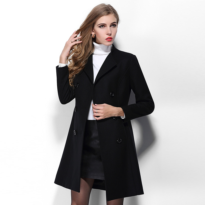 歐洲站2015秋冬裝新款高端羊毛呢外套雙排扣腰帶女式大衣風衣 /