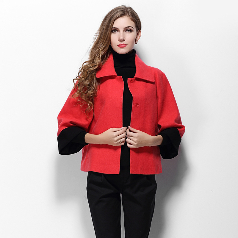 2015秋冬新款歐美高端定制面料羊毛呢外套長袖拉鏈女裝 /