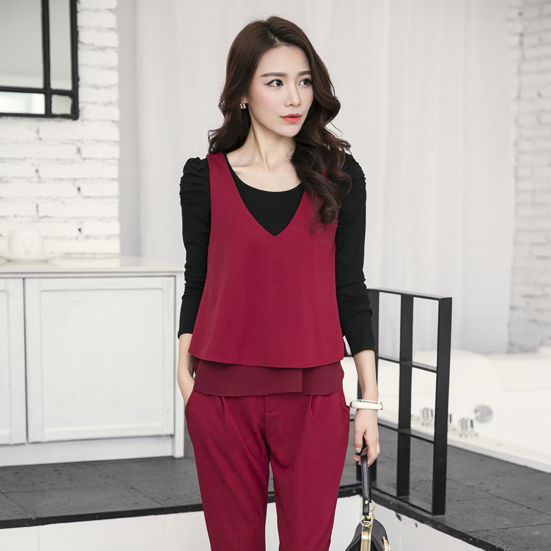女裝直批 潮2015氣質顯瘦套裝潮褲子兩件套女裝FZL-5007 廠家直銷 /
