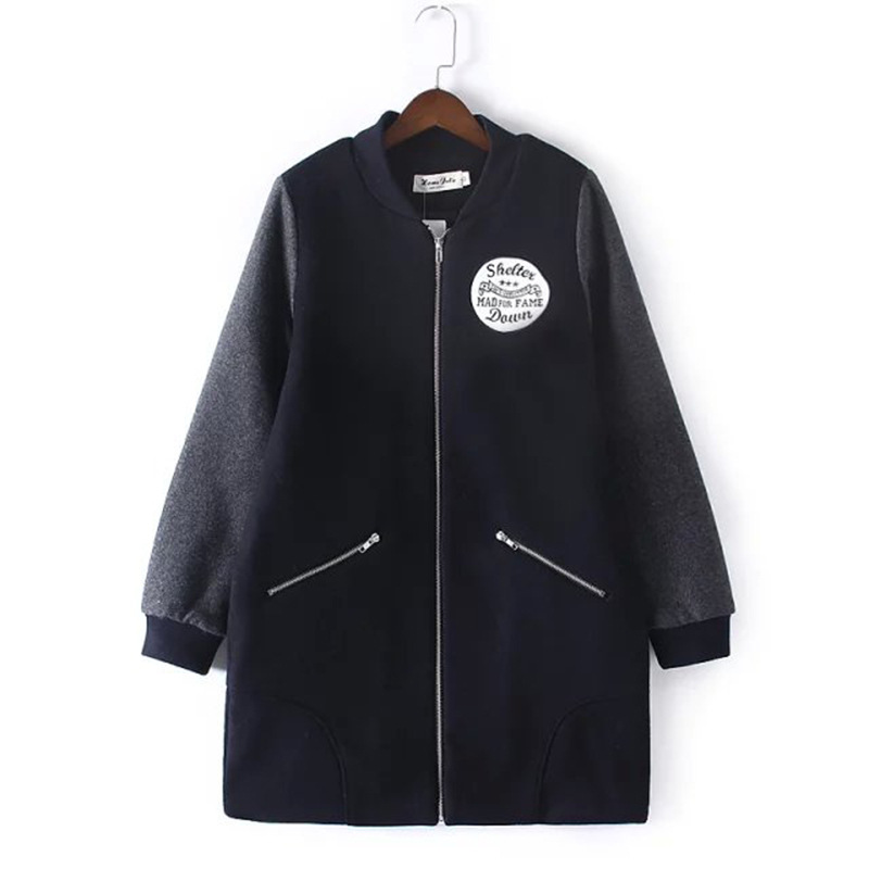 中長款外套棒球服女 韓版寬松拼色時尚加厚棒球服批發 女式外套潮 /