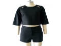 歐洲站2015秋季新款歐美女裝七分袖圓領領印花鏤空打底T恤 /