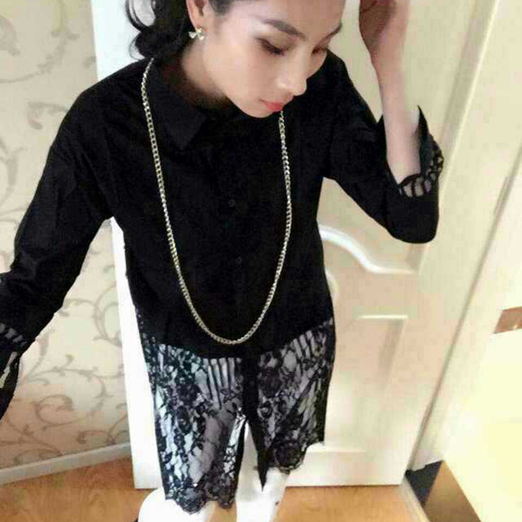 2015春裝新款 中長款女式襯衣 蕾絲拼接襯衫女 批發 /