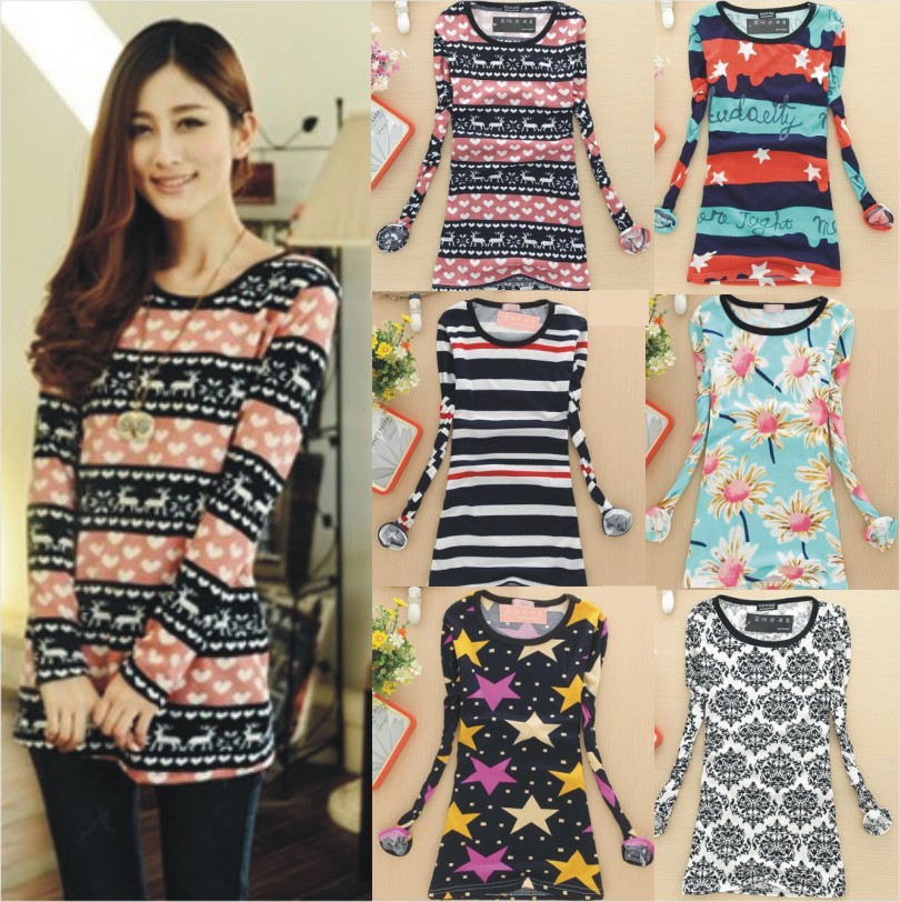 虎門T恤 2015秋冬季加絨加厚保暖長袖T恤女式上衣打底衫地攤貨源 /