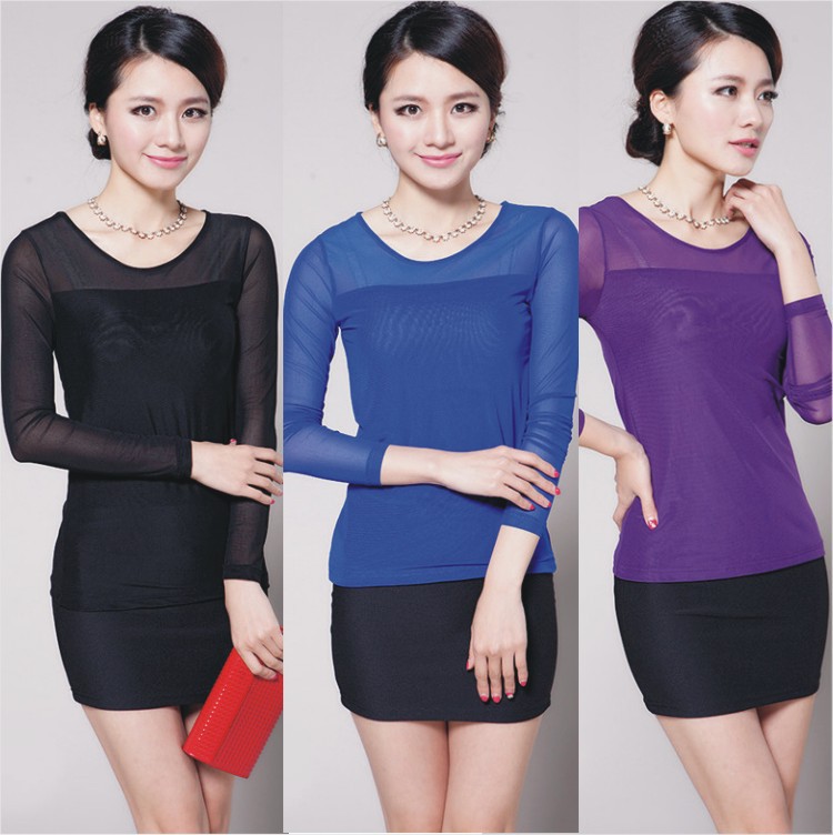 15秋裝新款 女裝修身長袖T恤 韓版性感蕾絲打底衫長袖批發 /