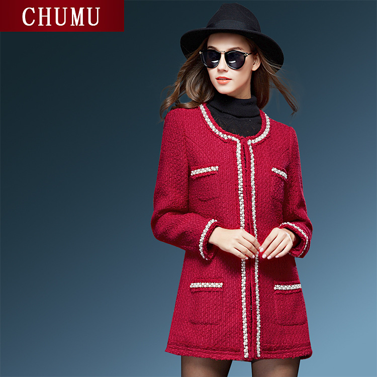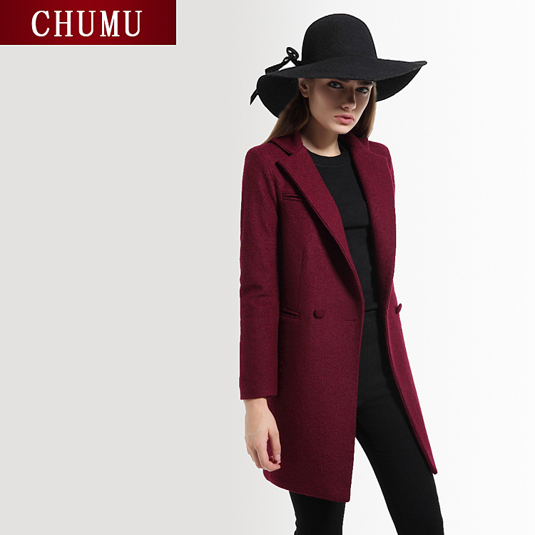 冬新品2015秋冬季女裝新款長袖繡花修身百搭中長款毛呢大衣外套 /
