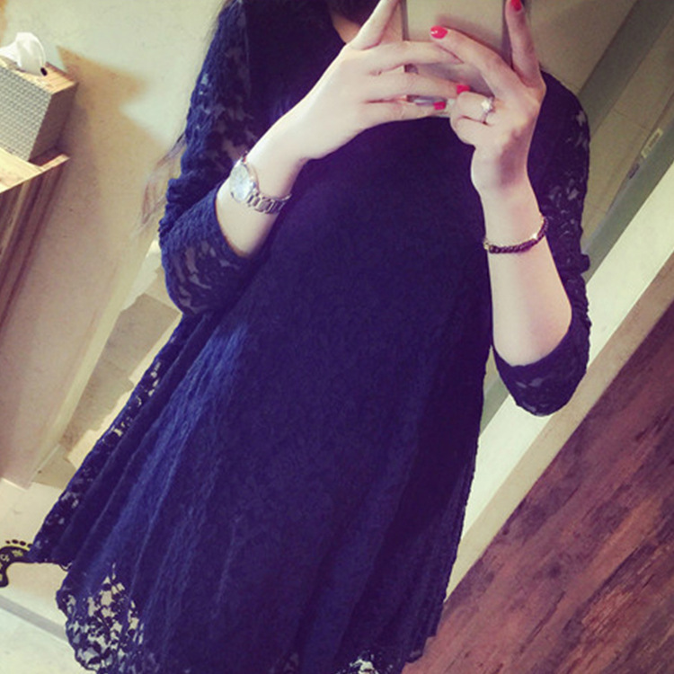 6831 秋冬新款韓版中長款超仙精致鏤空蕾絲衫打底衫女 /