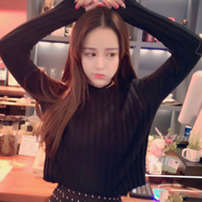 6835 韓版新款優雅氣質長袖小高領中長連衣裙打底裙子 /