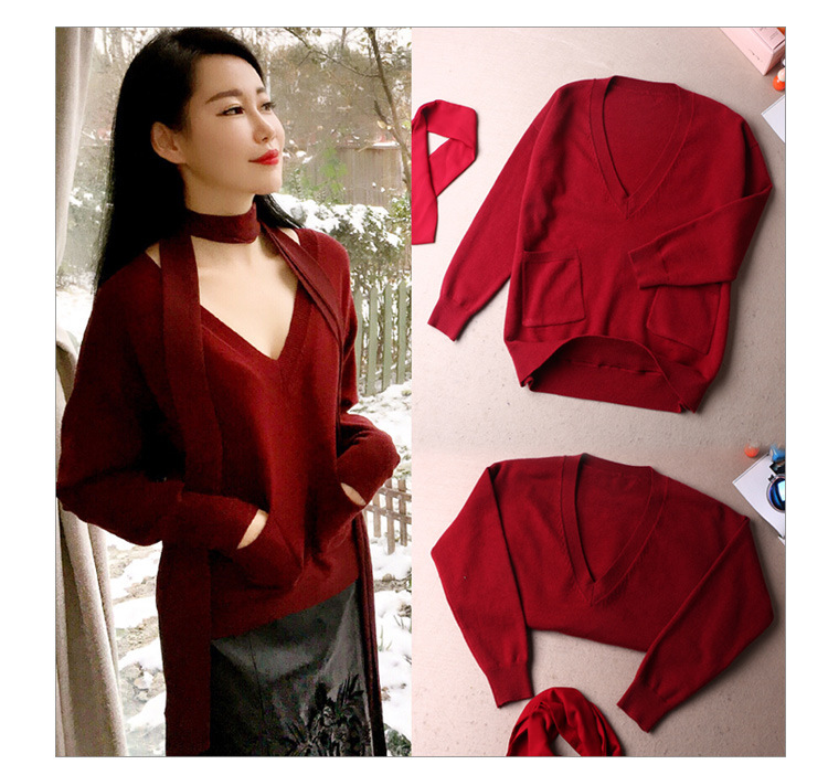 現貨 2015秋冬 左岸瀟紅色V領針織打底衫 女裝 女式毛衣 廠家批發 /