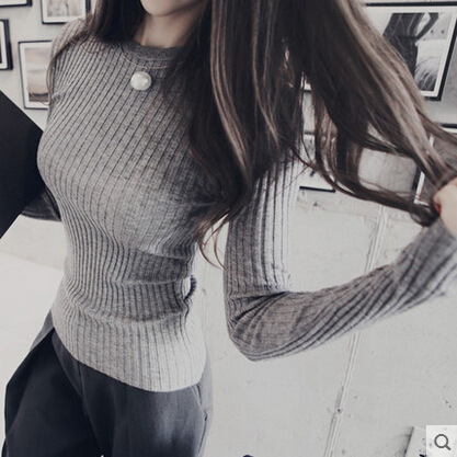 2015秋裝新款韓版修身薄款針織毛衣 女士套頭緊身打底衫上衣 /