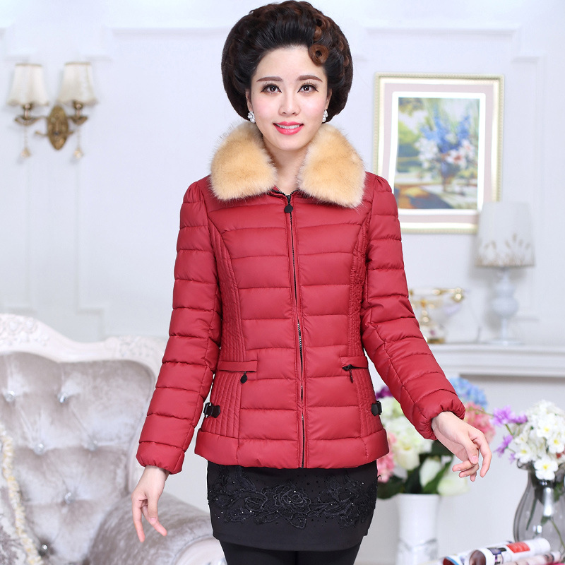 2015新款冬裝短款立領棉衣大碼中老年輕薄羽絨保暖媽媽裝棉襖外套 /